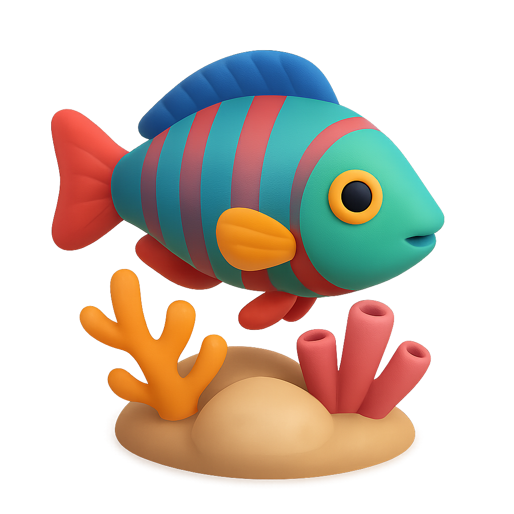 Vibrant 3D Colorful Wrasse Icon with Coral