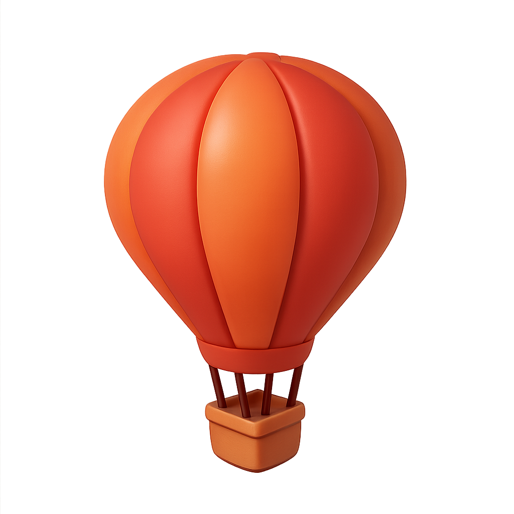 Vibrant 3D Hot Air Balloon Icon with Isometric Feel