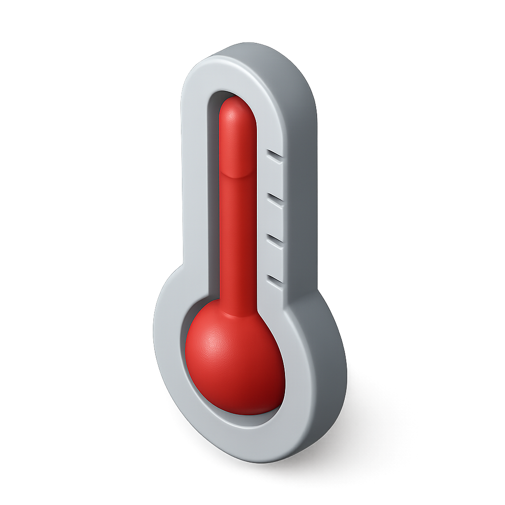 A visually striking 3D thermometer icon featuring a sleek design with a red bulb and grey casing, displayed in a three-quarter view against a subtle gradient background.