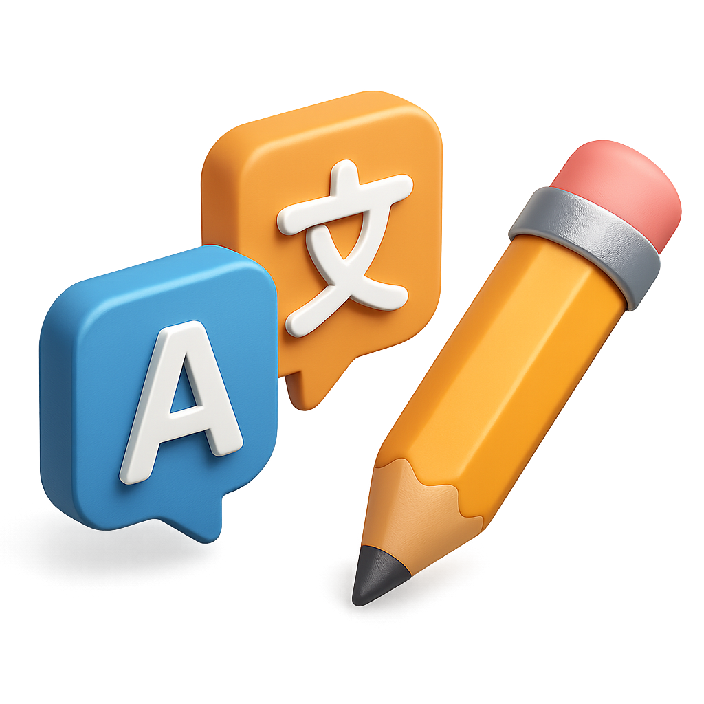 3D Language Translation Icon with Pencil and Speech Bubbles
