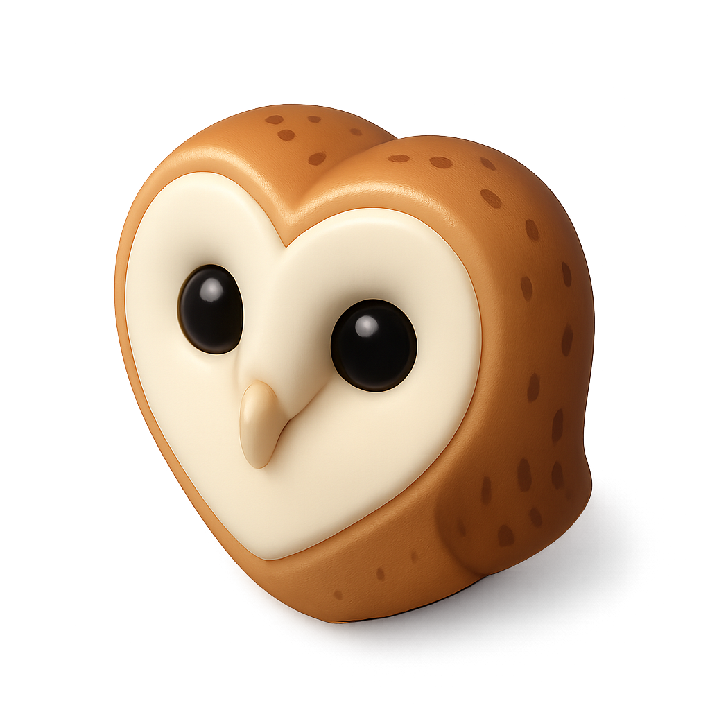 Charming 3D Barn Owl Icon with Heart Face