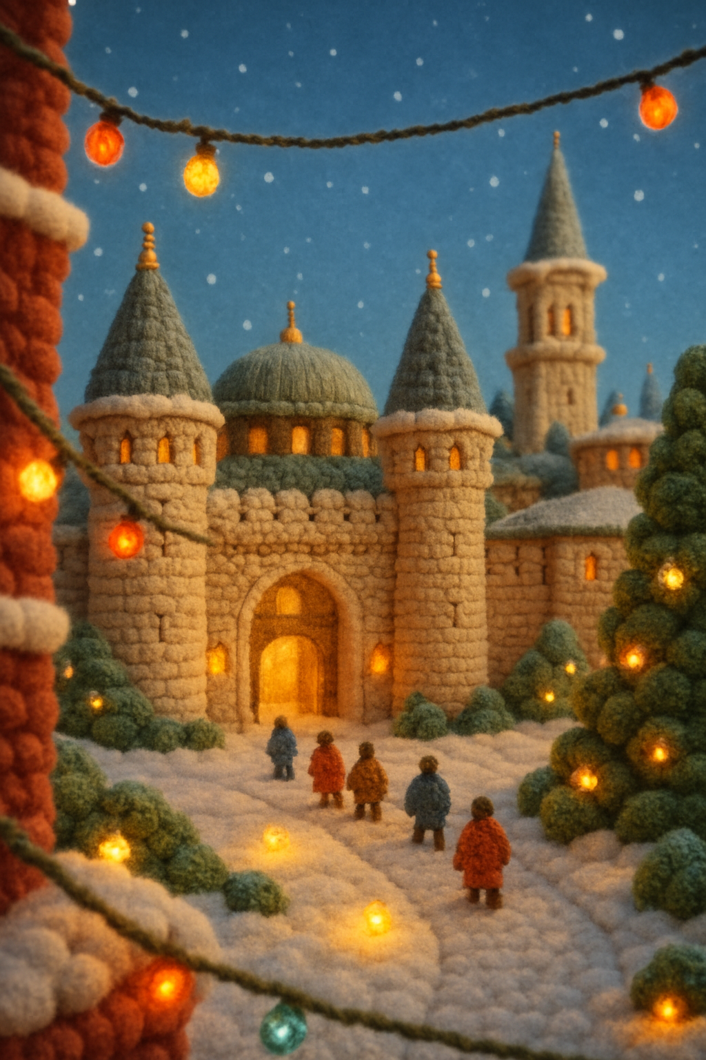 Whimsical Woolen Topkapi Palace Scene with Holiday Lights