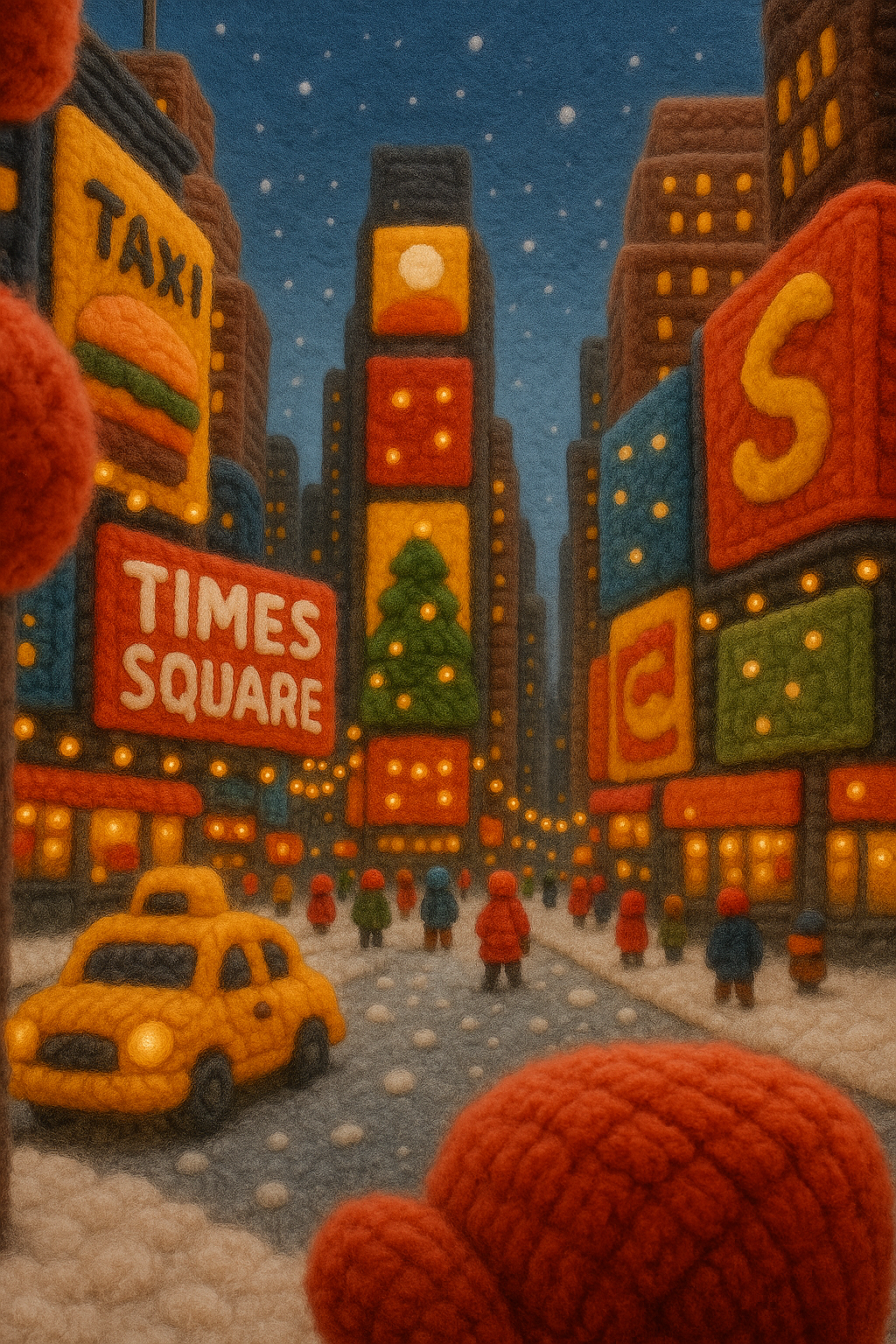 Cozy Yarn Interpretation of Times Square in Winter