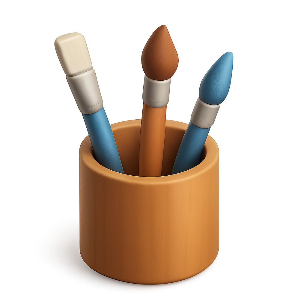 Stylish 3D Paint Holder Icon with Brushes