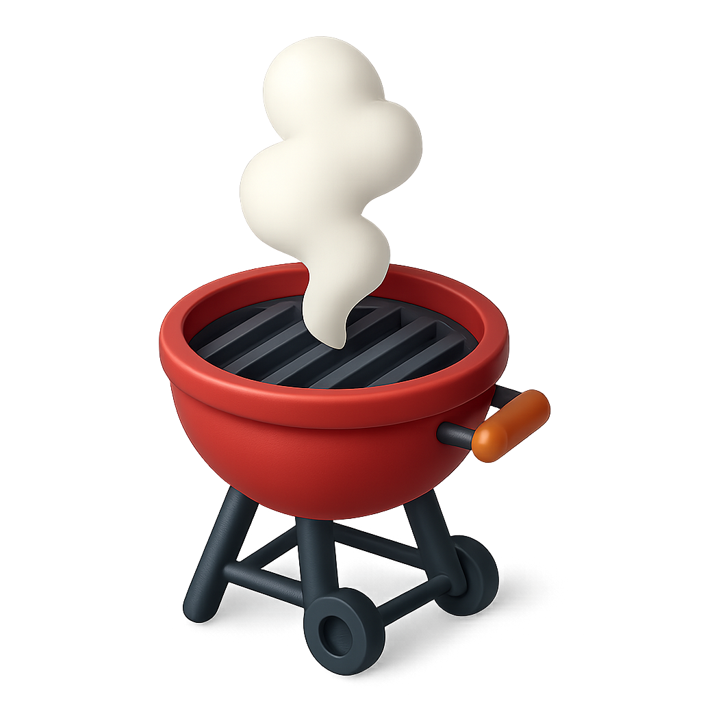 Stylish 3D Barbecue Grill Icon with Smoke Effect