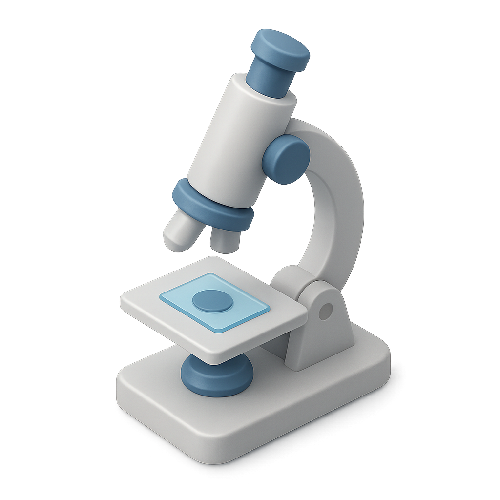 /Collection: /by davooda/Type: PNG/A stylized 3D microscope icon featuring a slide on the stage. The design showcases a three-quarter view with a modern, isometric feel and a transparent background.