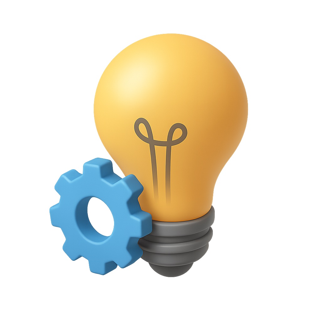 3D Icon of an Invention Featuring a Light Bulb and Gear