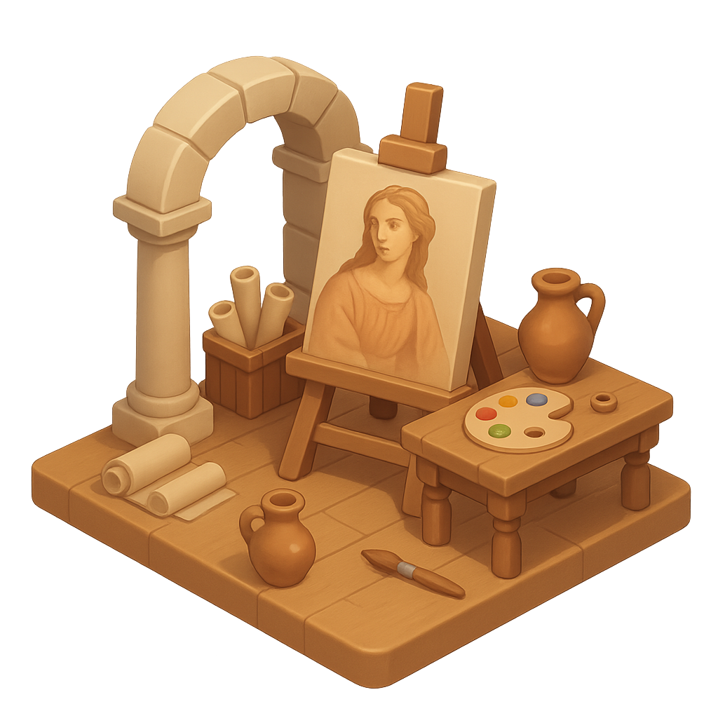 3D Isometric Renaissance Art Studio Icon with Transparent Background