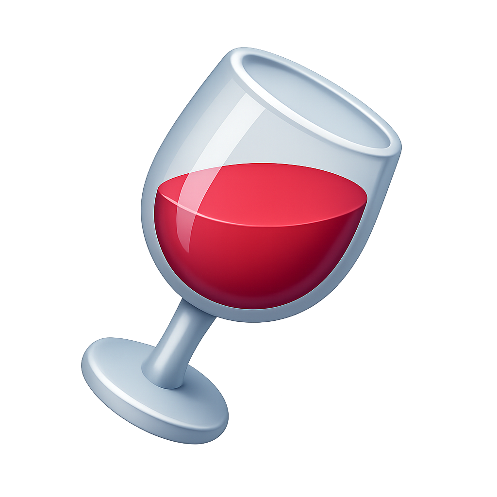 3D Wine Glass Icon with Red Wine in a Tilted Position