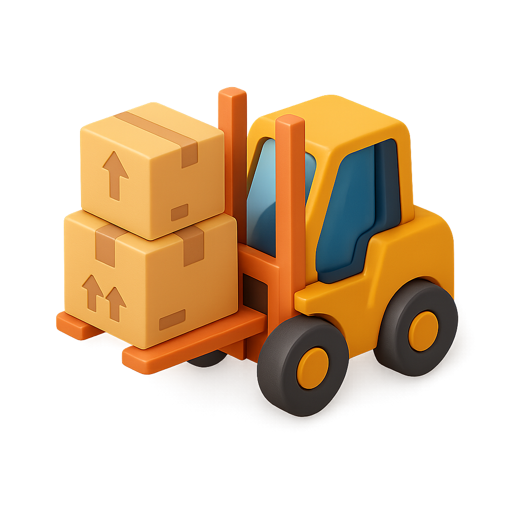 Stylized 3D Forklift Icon with Pallets in Motion