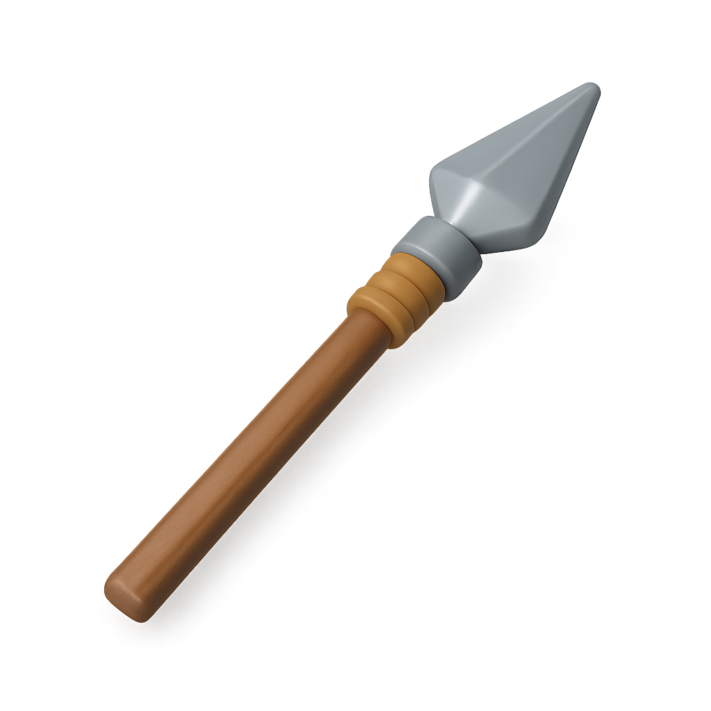A 3D icon of a lancer cavalry spear, featuring a metallic spearhead, a wooden shaft, and a smooth grip. The design showcases a three-quarter view with a transparent background.