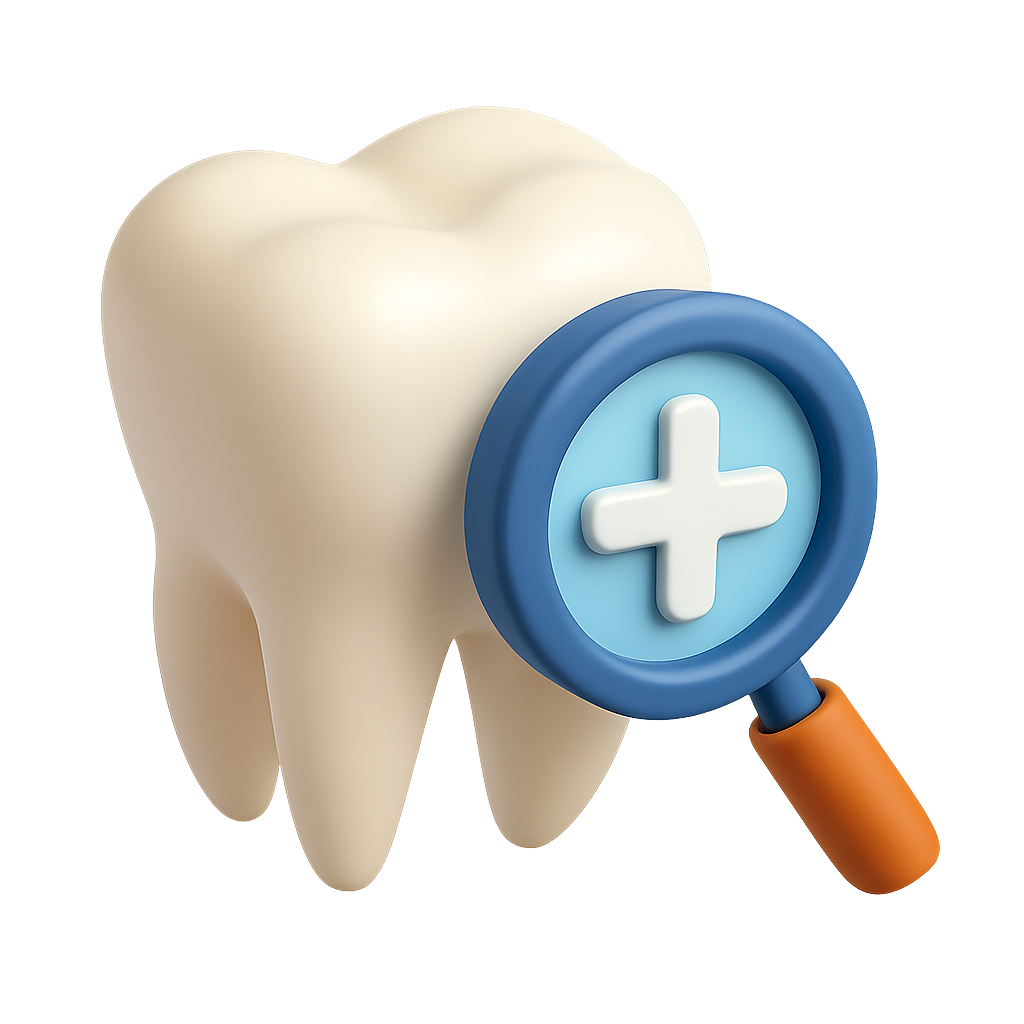 3D Tooth Icon with Magnifying Glass in Isometric View