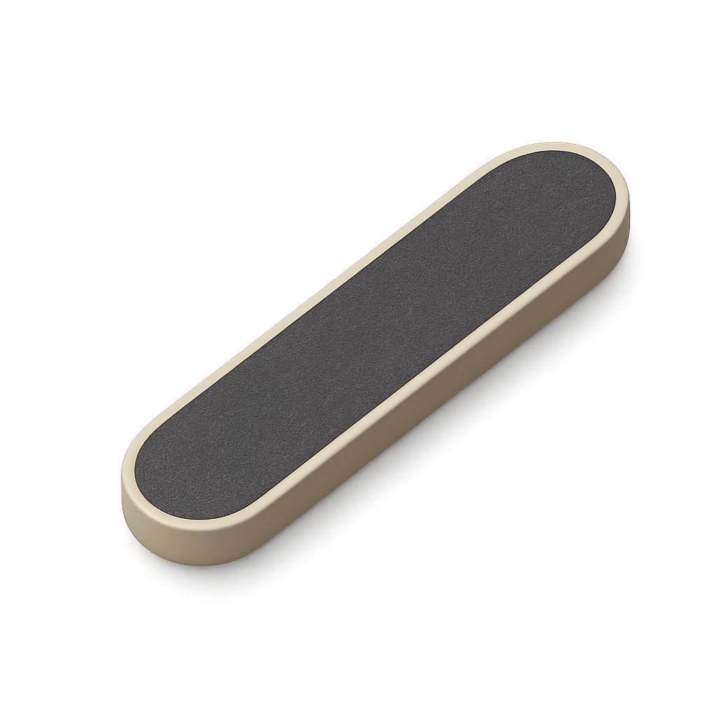 A sleek, isometric 3D icon of a nail file, featuring a textured dark surface and a smooth, light-colored edge. The design emphasizes depth and volume.