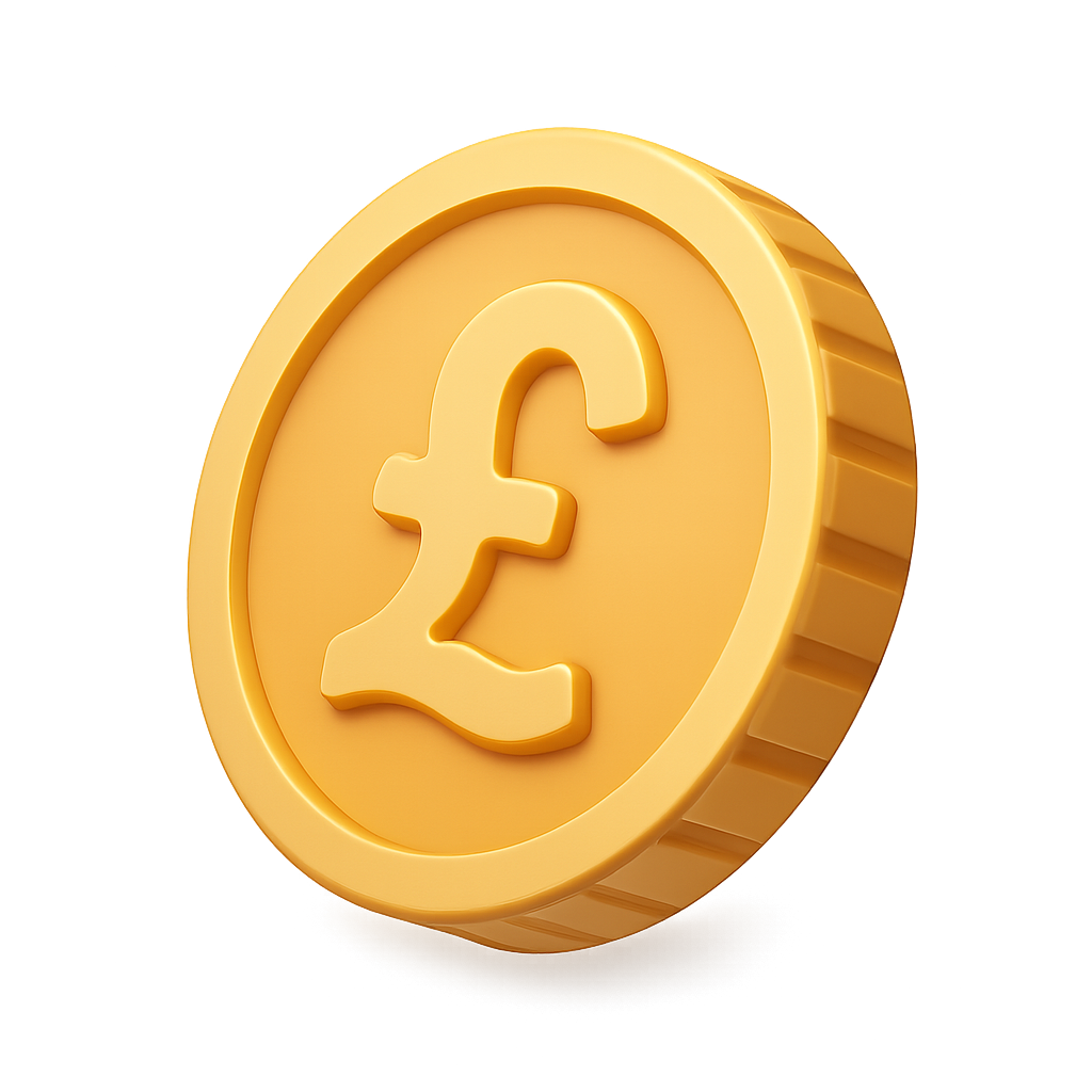 Stylized 3D Icon of a Pound Coin with Isometric Design