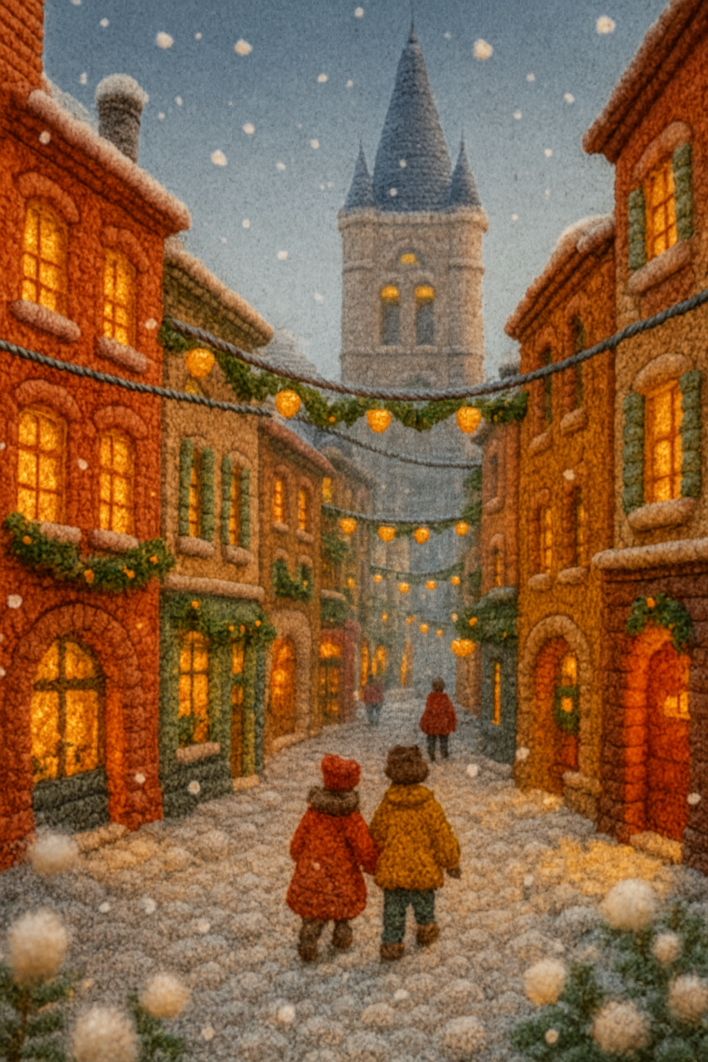Whimsical Christmas Scene in Bremen with Woolen Textures