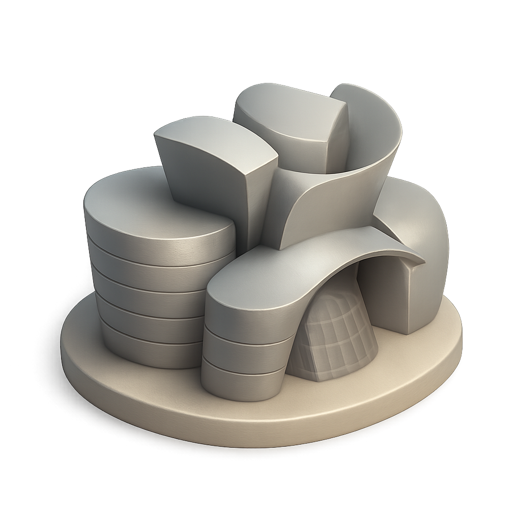 /Collection: /by davooda/Type: PNG/A 3D representation of the Guggenheim Bilbao, showcasing its iconic curvy architecture. The model features a three-quarter view with a smooth, volumetric design against a neutral background.