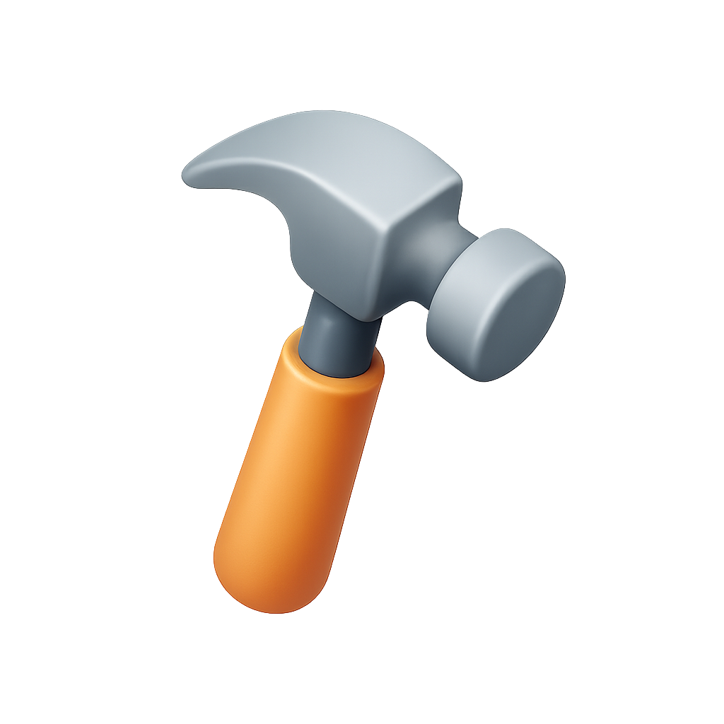 /Collection: /by davooda/Type: PNG/A visually appealing 3D icon of a claw hammer featuring a gray head and an orange handle. The design showcases a three-quarter view with a subtle volumetric glow effect.