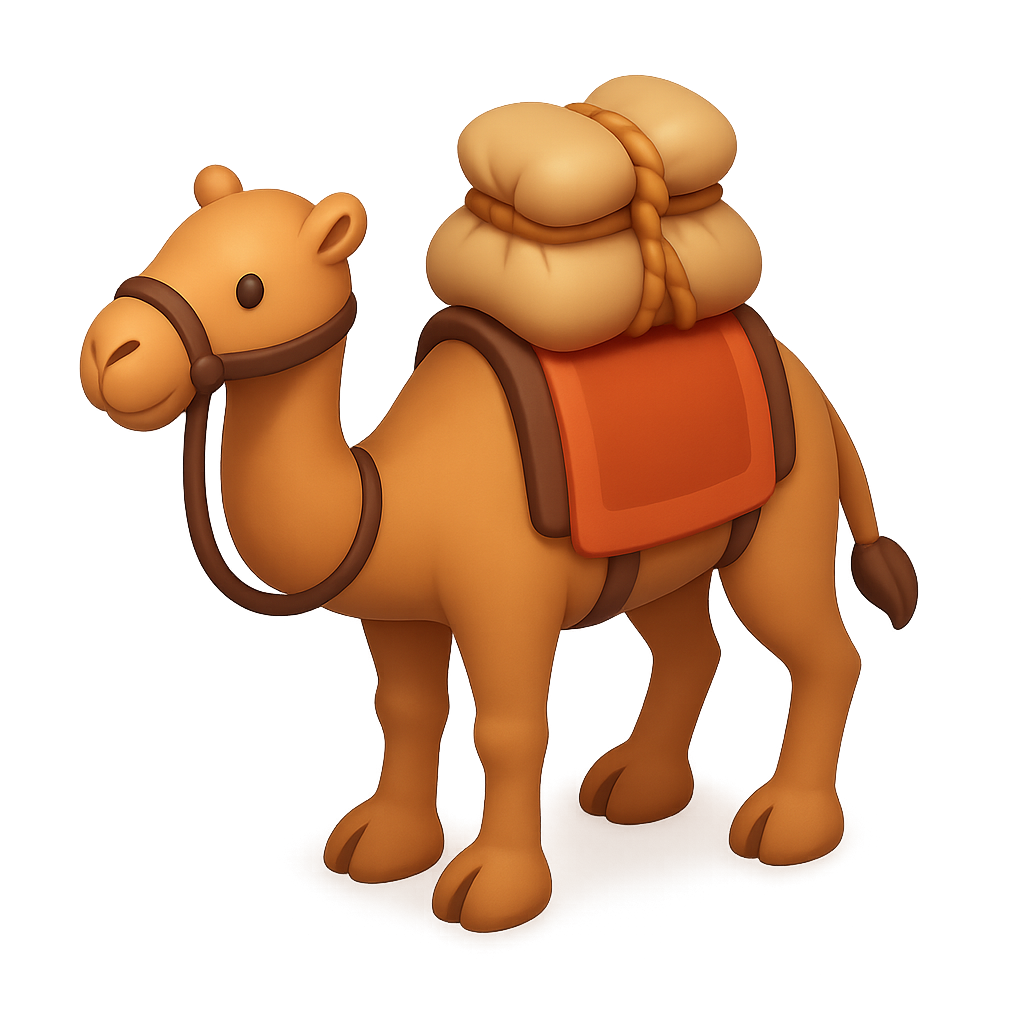 3D Icon of a Silk Road Merchant Camel with Saddle Bags