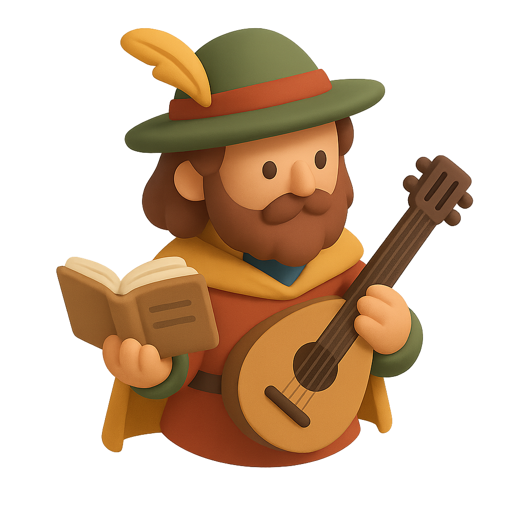 3D Bard Icon with Book and Lute in Isometric View