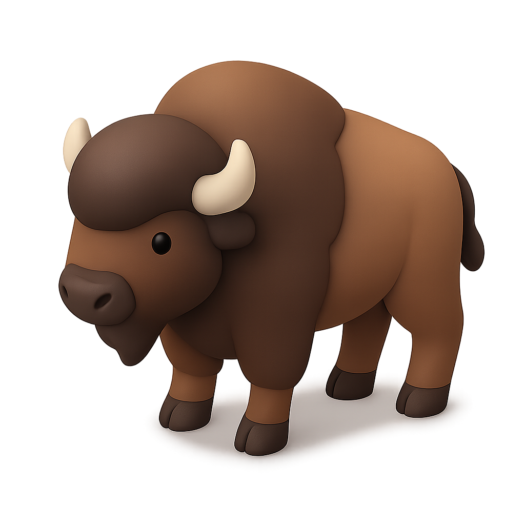 /Collection: /by davooda/Type: PNG/A stylized 3D bison icon presented in a three-quarter view, featuring a smooth, rounded body and prominent horns. The design has a soft, volumetric appearance with a transparent background.