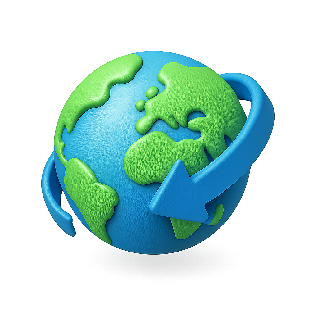 /Collection: /by davooda/Type: PNG/A vibrant 3D globe featuring a circular arrow, showcasing a three-quarter view with a sleek isometric design. The globe is predominantly blue and green, highlighting the continents.