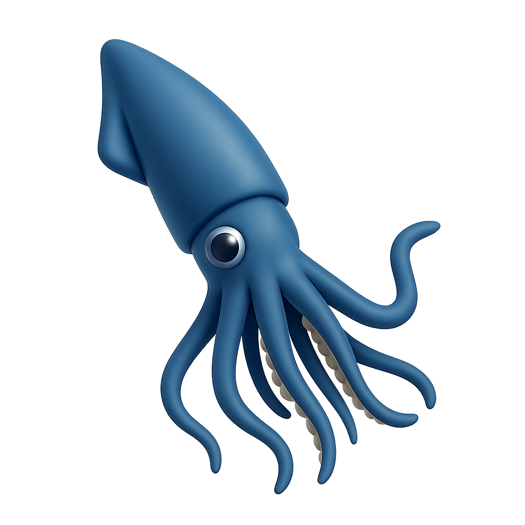 Stylized 3D Giant Squid Icon in Isometric View