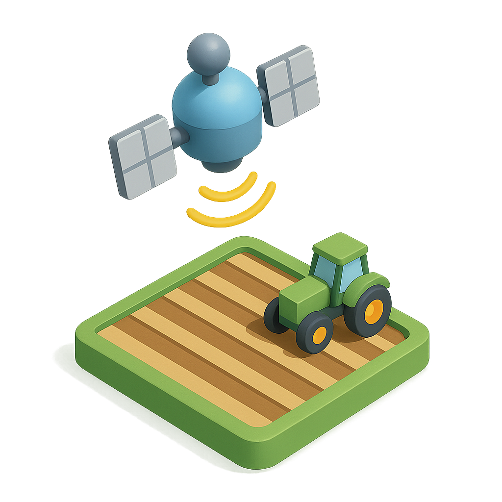 3D Icon of Precision Agriculture with Tractor and Satellite