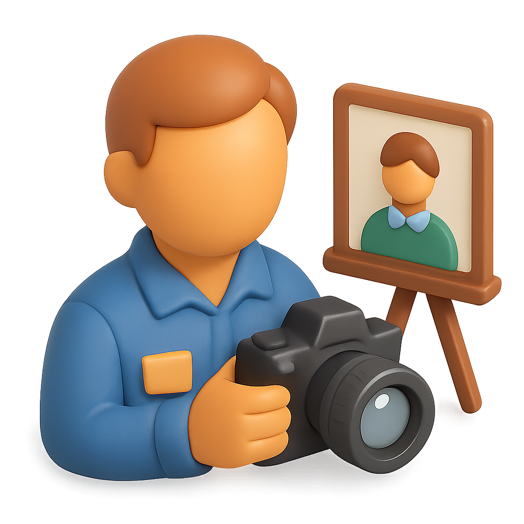 3D School Photographer Icon with Camera and Portrait