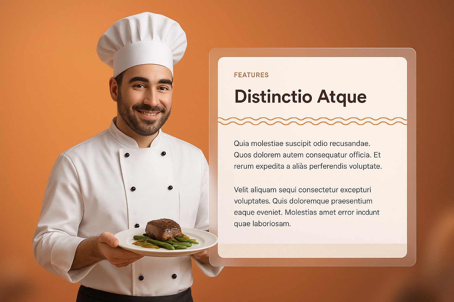 Chef Presenting a Delicious Dish with Features Section