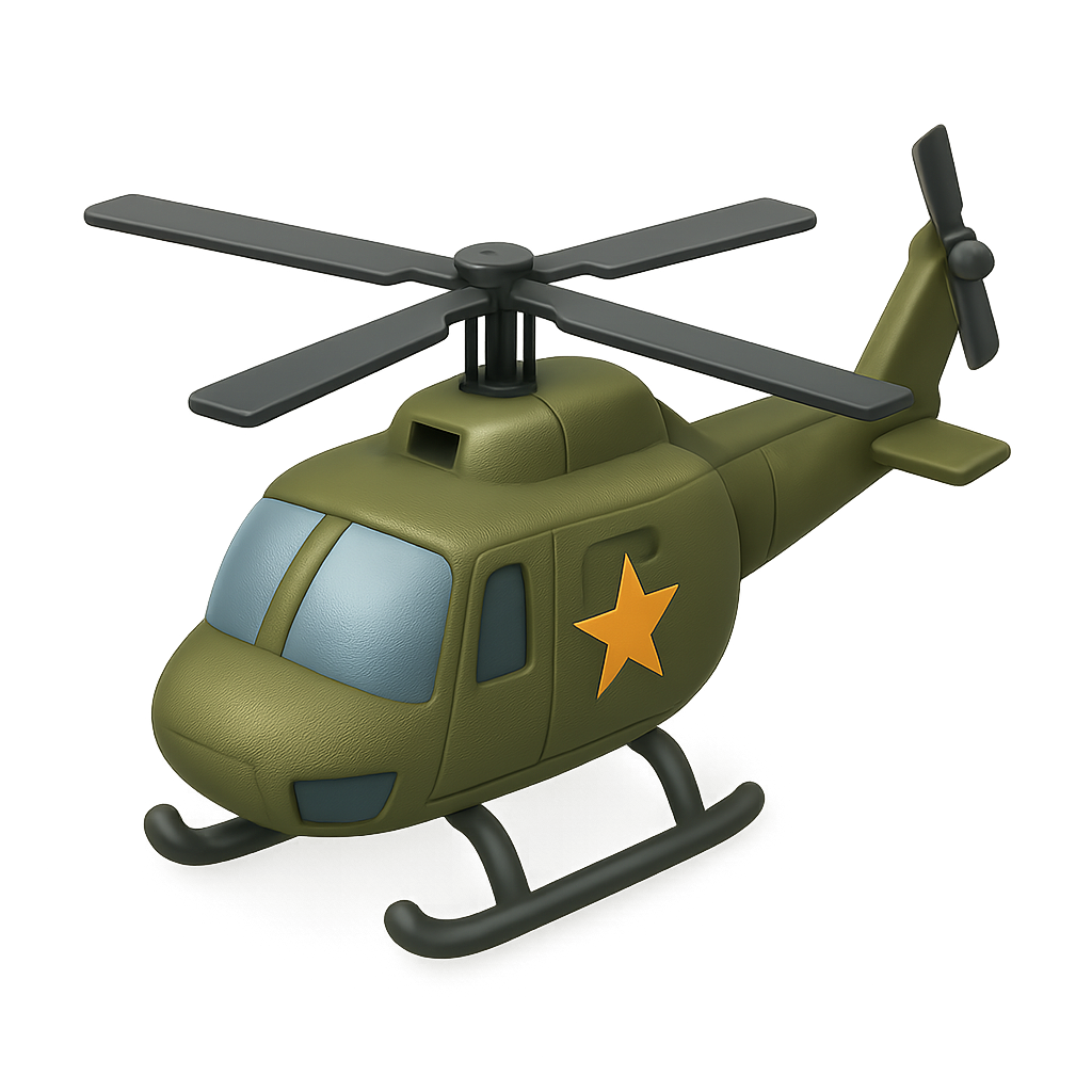 A stylized 3D icon of a helicopter with a green body and a yellow star. The helicopter is depicted in a three-quarter view against a smooth gradient background, showcasing a volumetric design.