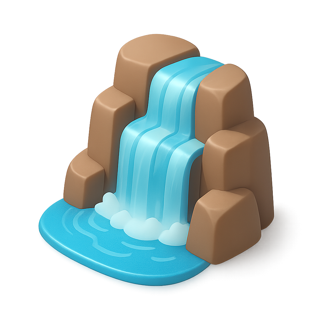 3D Waterfall Icon with Isometric Design and Volumetric Effects