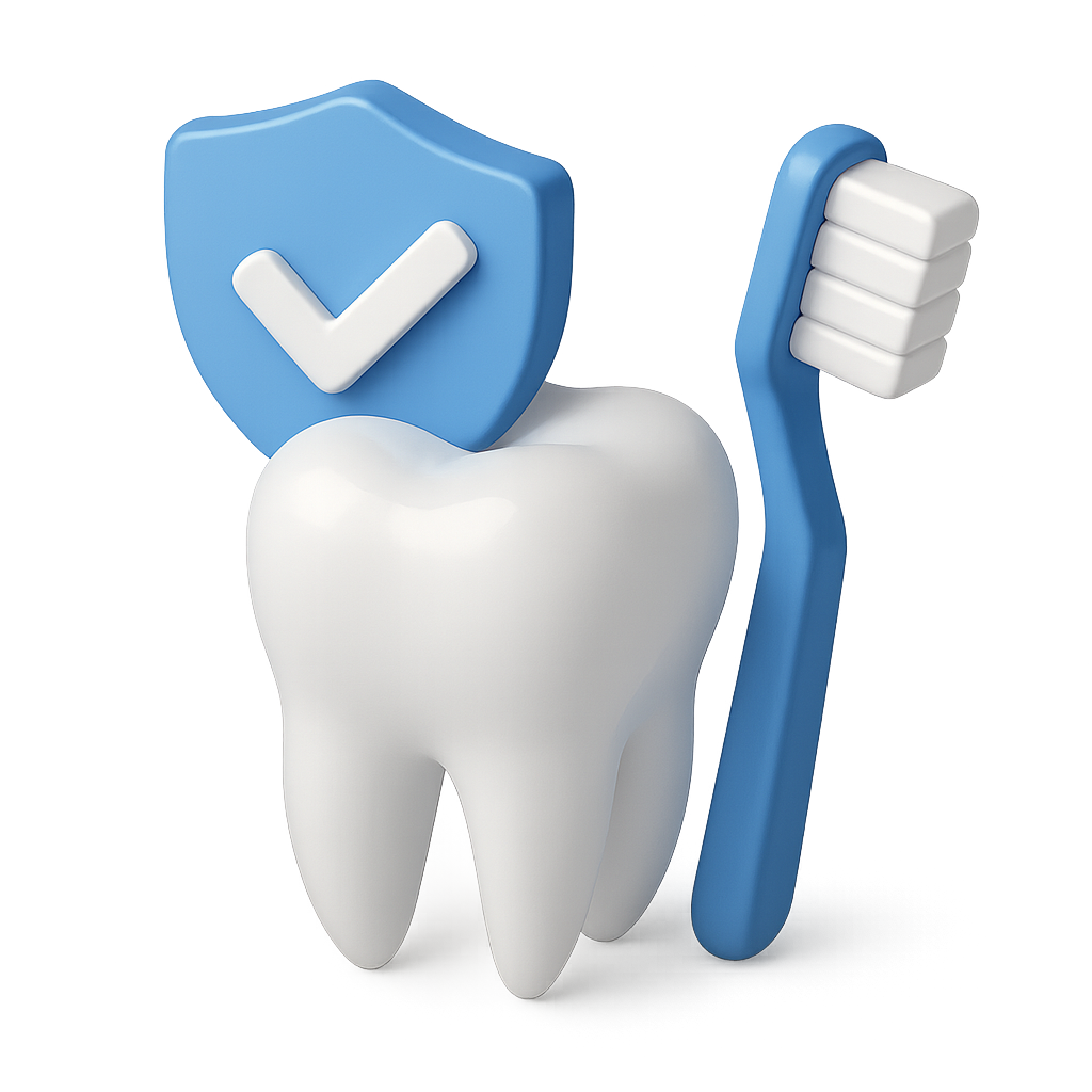 3D Dental Icon Featuring Tooth, Shield, and Toothbrush