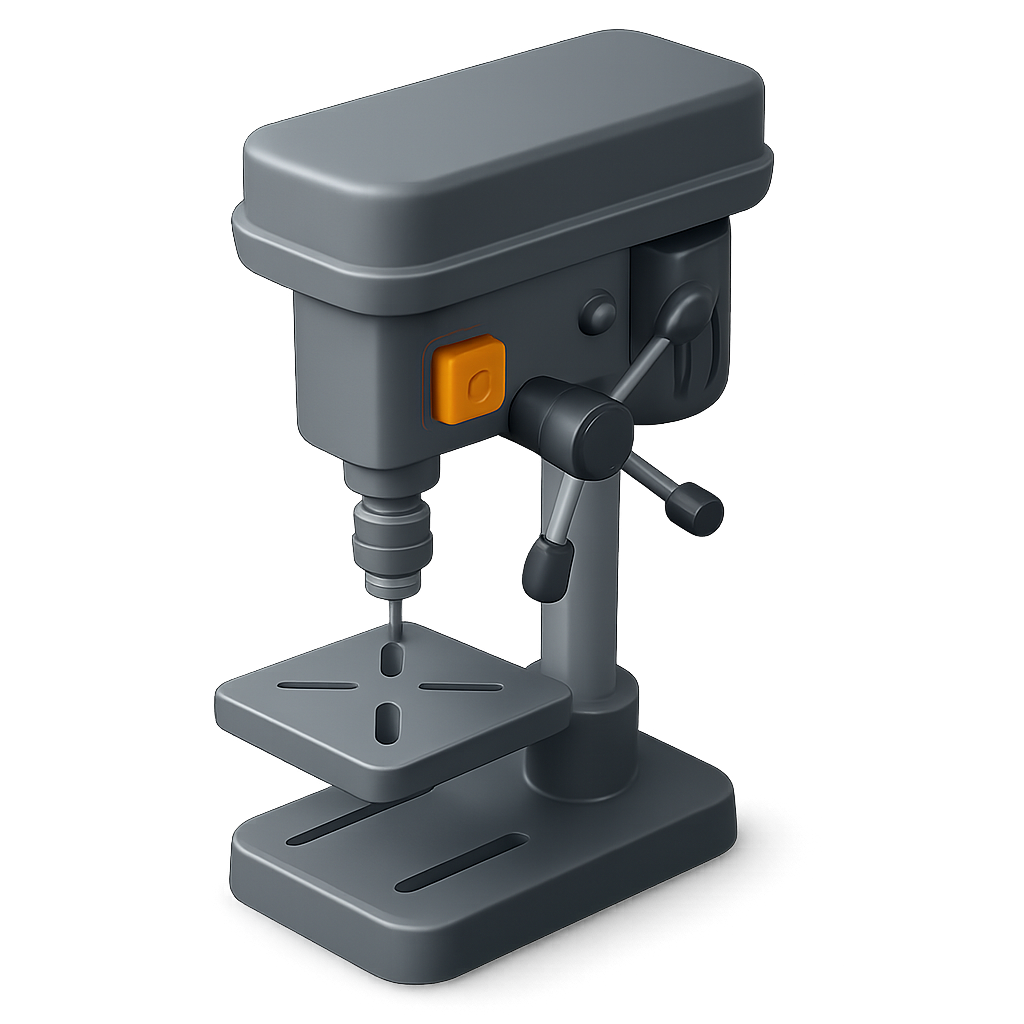 Stylized 3D Drill Press Icon in Isometric View