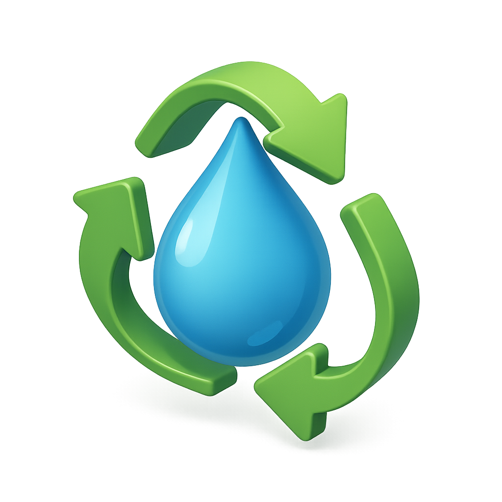 /Collection: /by davooda/Type: PNG/A visually striking 3D icon featuring a blue water droplet at the center, surrounded by green recycling arrows. The design has a transparent background and a three-quarter isometric view, highlighting its volumetric quality.