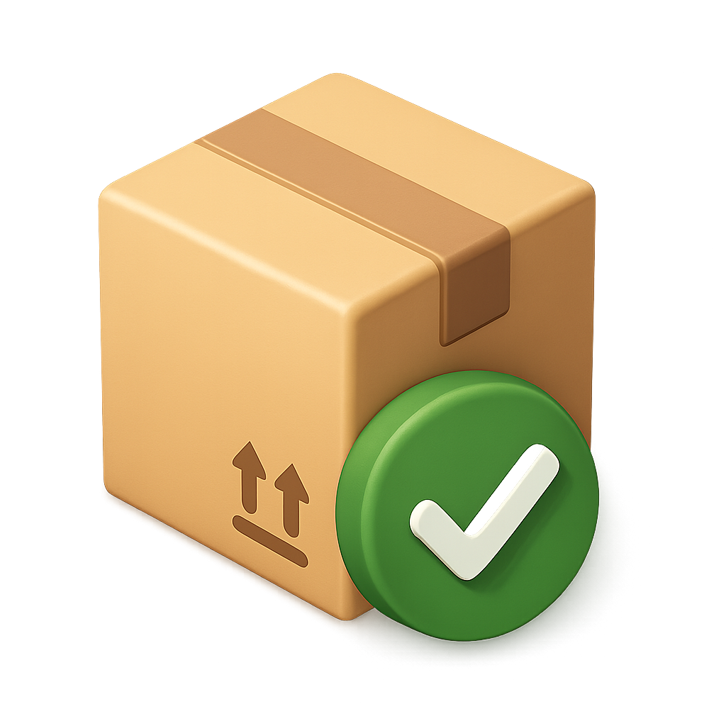 3D Package Icon with Checkmark in Isometric View