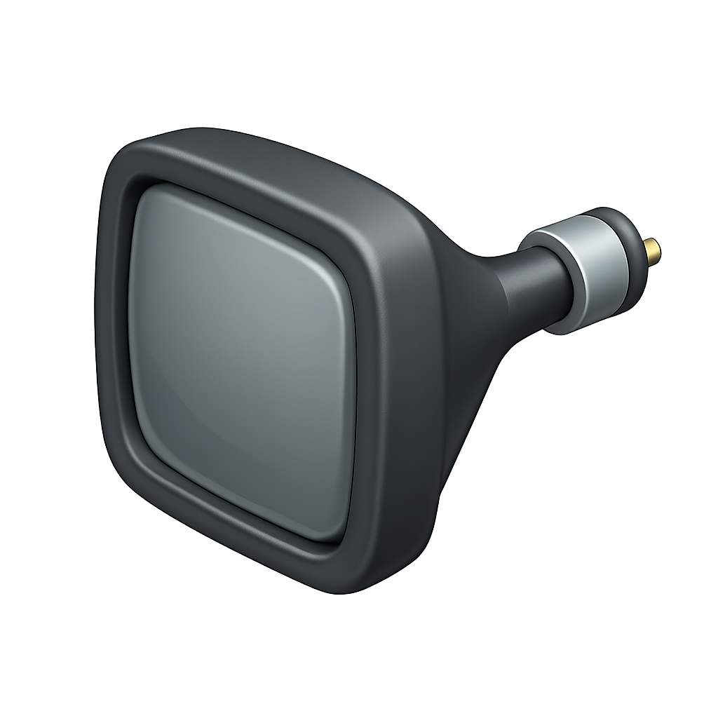 /Collection: /by davooda/Type: PNG/A sleek 3D rendering of a television picture tube, shown in a three-quarter isometric view. The design features a smooth, rounded body with a square screen and a connector, all set against a subtle gradient background.