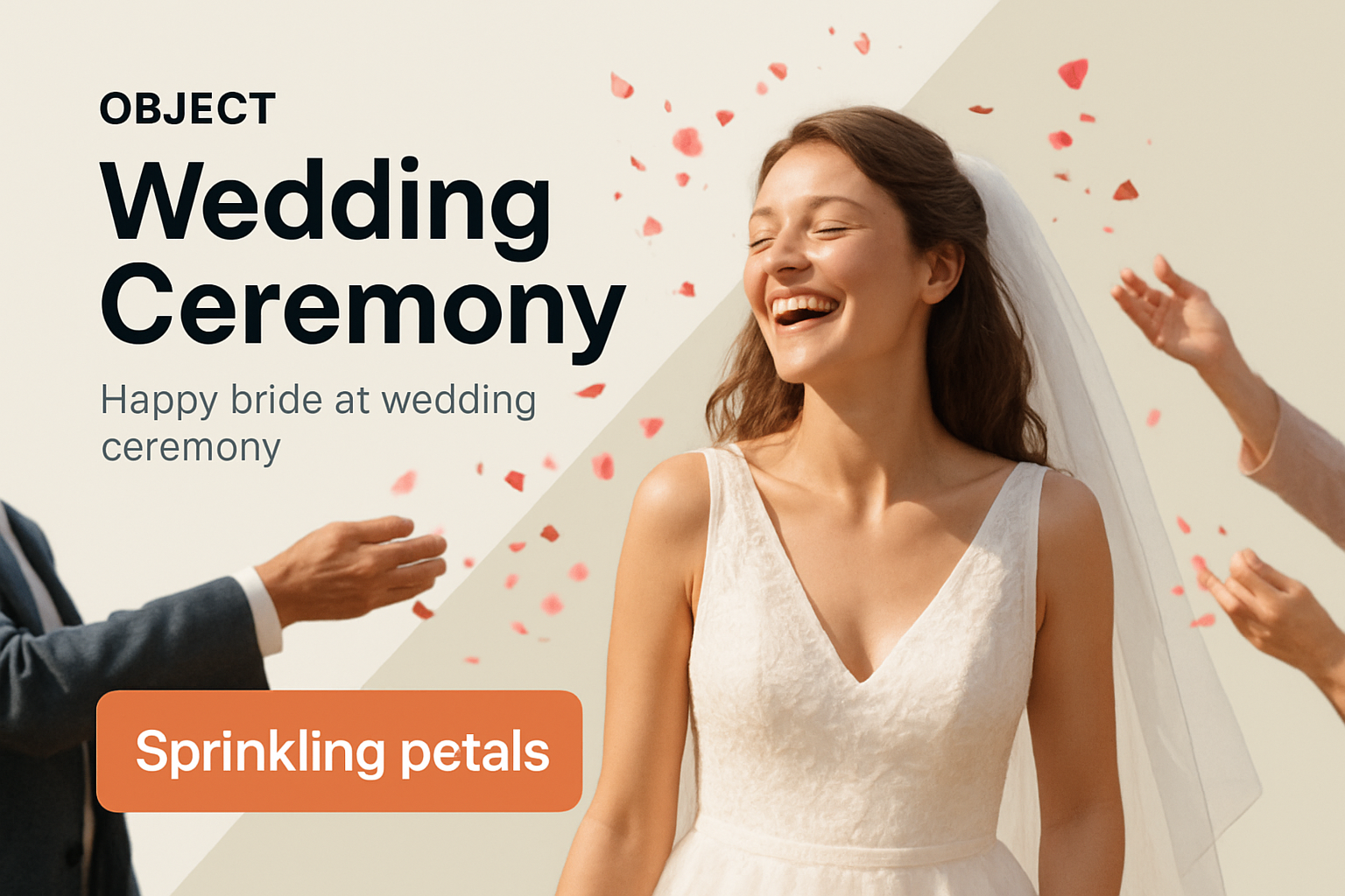 Joyful Bride Celebrating with Flower Petals at Wedding Ceremony