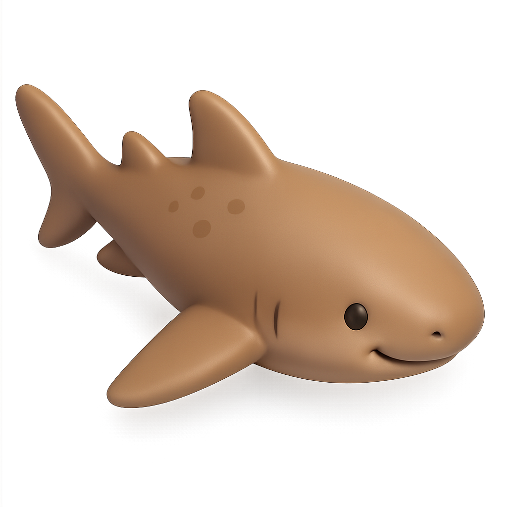/Collection: /by davooda/Type: PNG/A stylized 3D icon of a nurse shark, depicted in a three-quarter view. The shark has a smooth, friendly appearance with a light brown color and a transparent background, showcasing its rounded features.