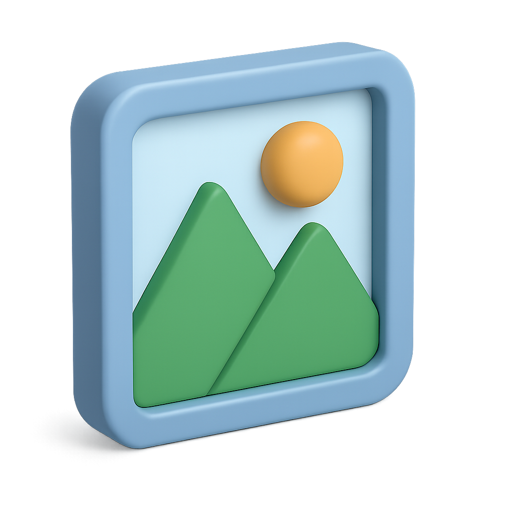 A vibrant 3D icon featuring a stylized mountain landscape with a sun. The design has a transparent background and a three-quarter isometric view, creating a playful and modern aesthetic.