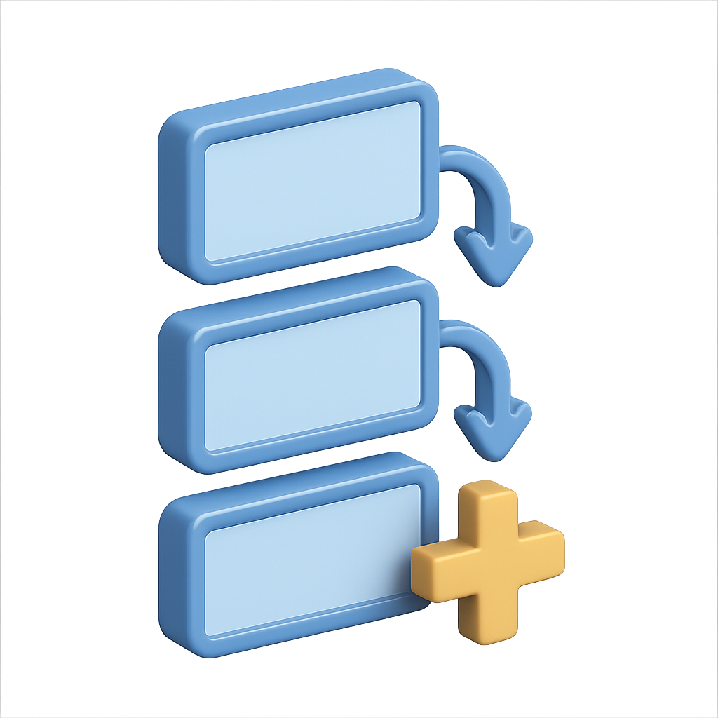 /Collection: /by davooda/Type: PNG/A visually appealing 3D design featuring three rectangular shapes with downward arrows, accompanied by a yellow plus symbol. The isometric perspective adds depth and volume.