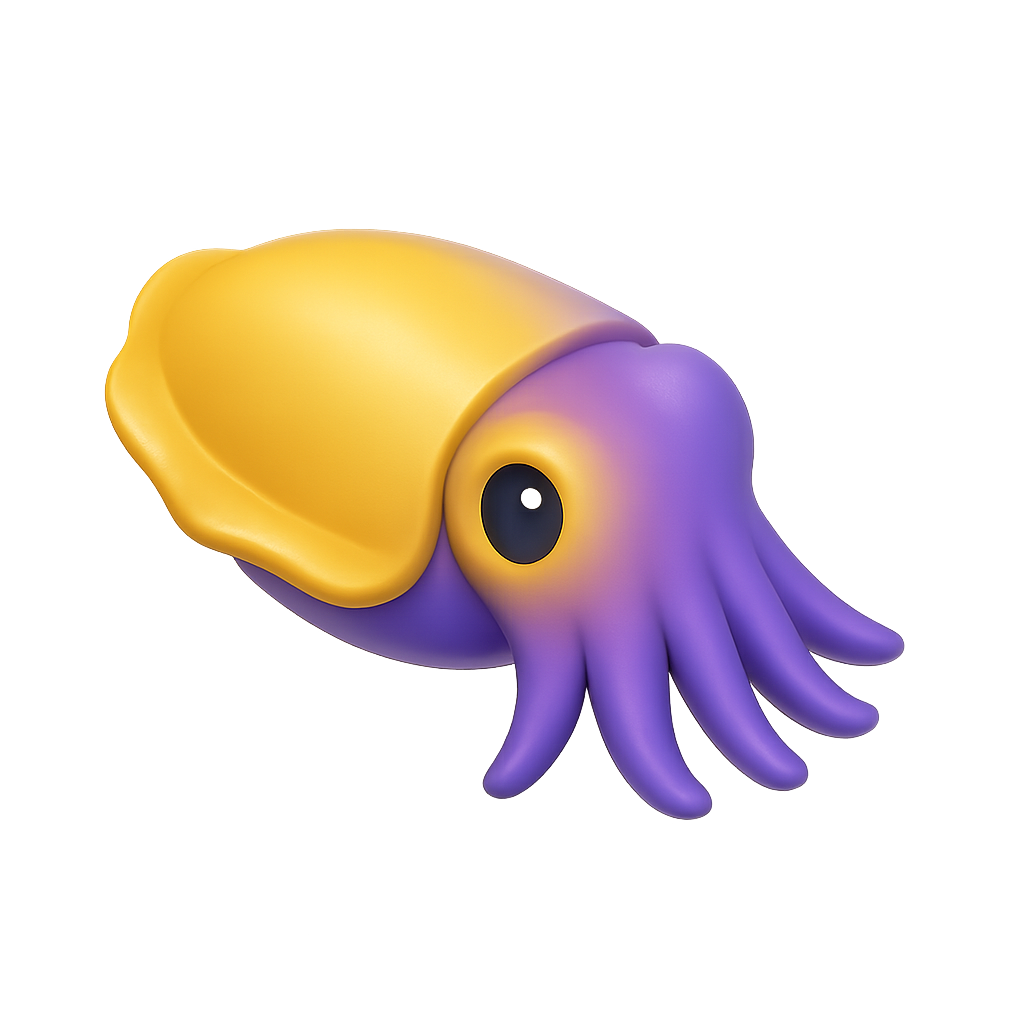 Vibrant 3D Cuttlefish Icon with Color Transition