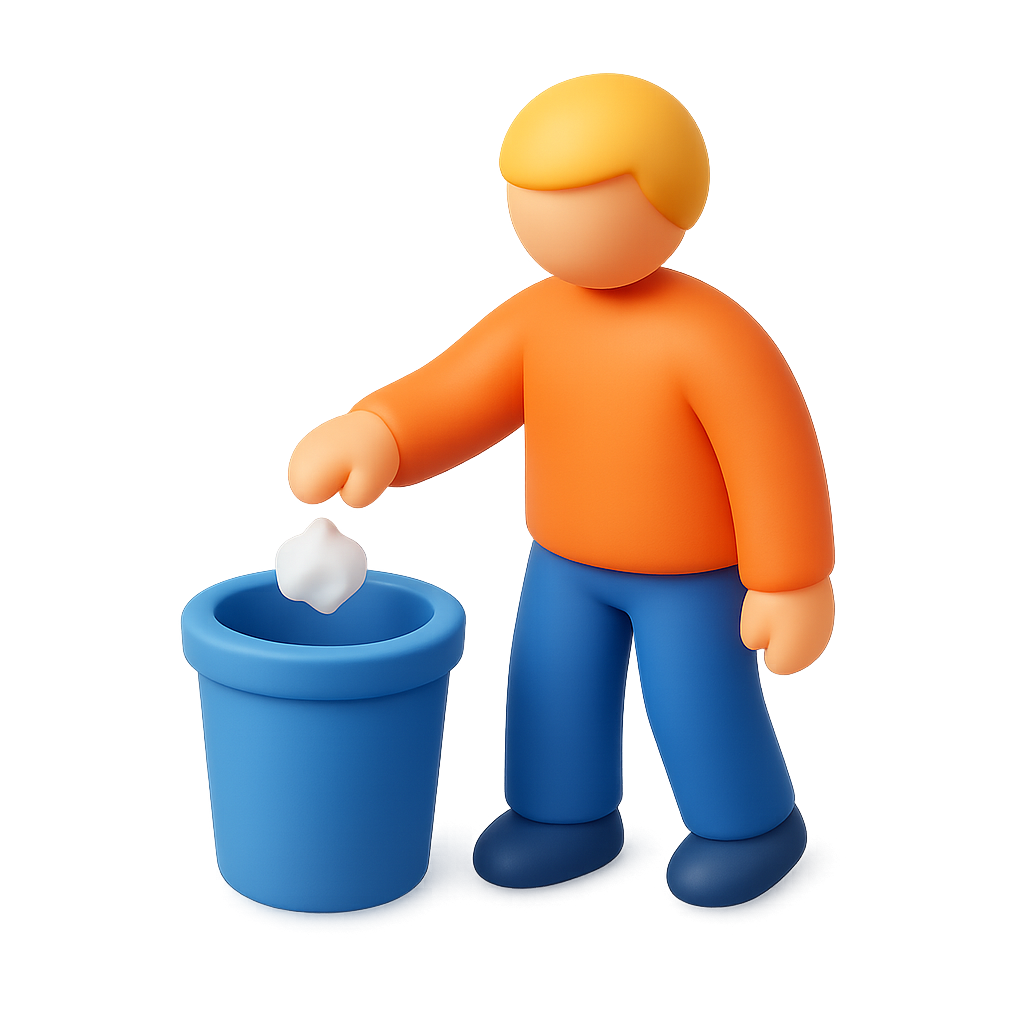 3D Icon of Person Disposing Trash in Bin
