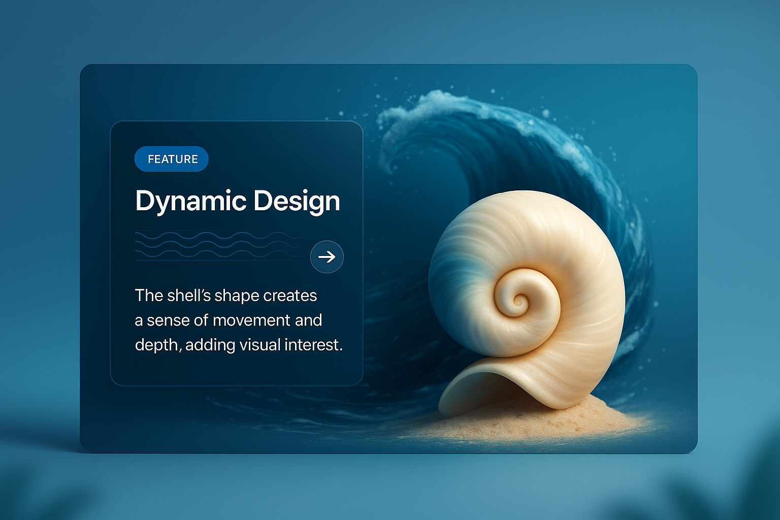 /Collection: /by davooda/Type: PNG/A visually striking 3D illustration of a shell against a smooth gradient background. The design includes a feature block highlighting 'Dynamic Design' with supporting graphics and text, creating a cohesive and engaging visual.