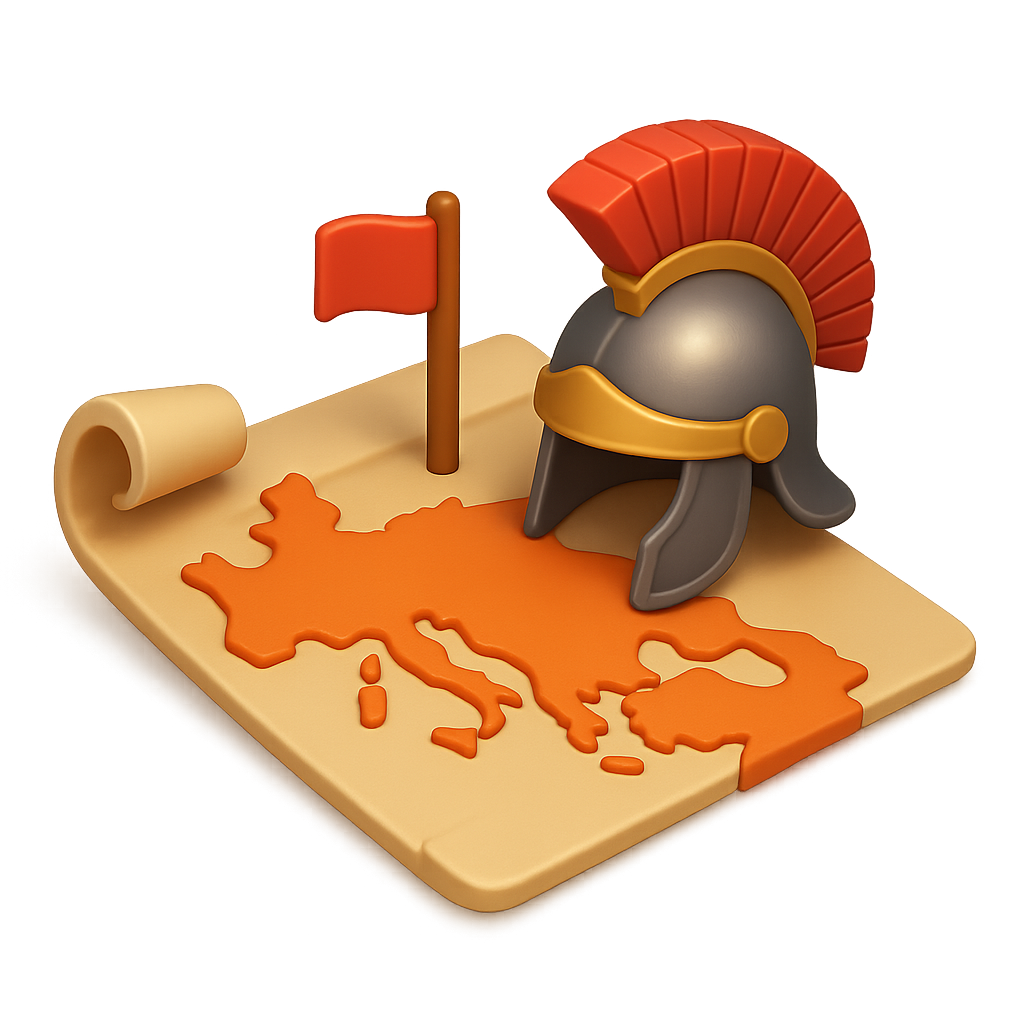 3D Icon of Roman Empire Expansion with Map and Helmet