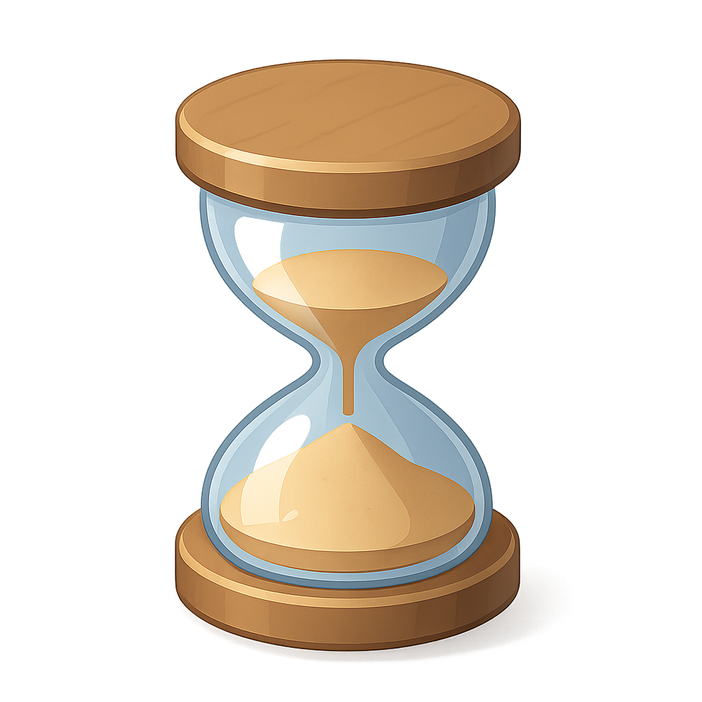 /Collection: /by davooda/Type: PNG/A visually appealing 3D hourglass icon featuring a glass body with sand flowing through it. The design is isometric and volumetric, highlighting the hourglass's elegant shape and wooden accents.