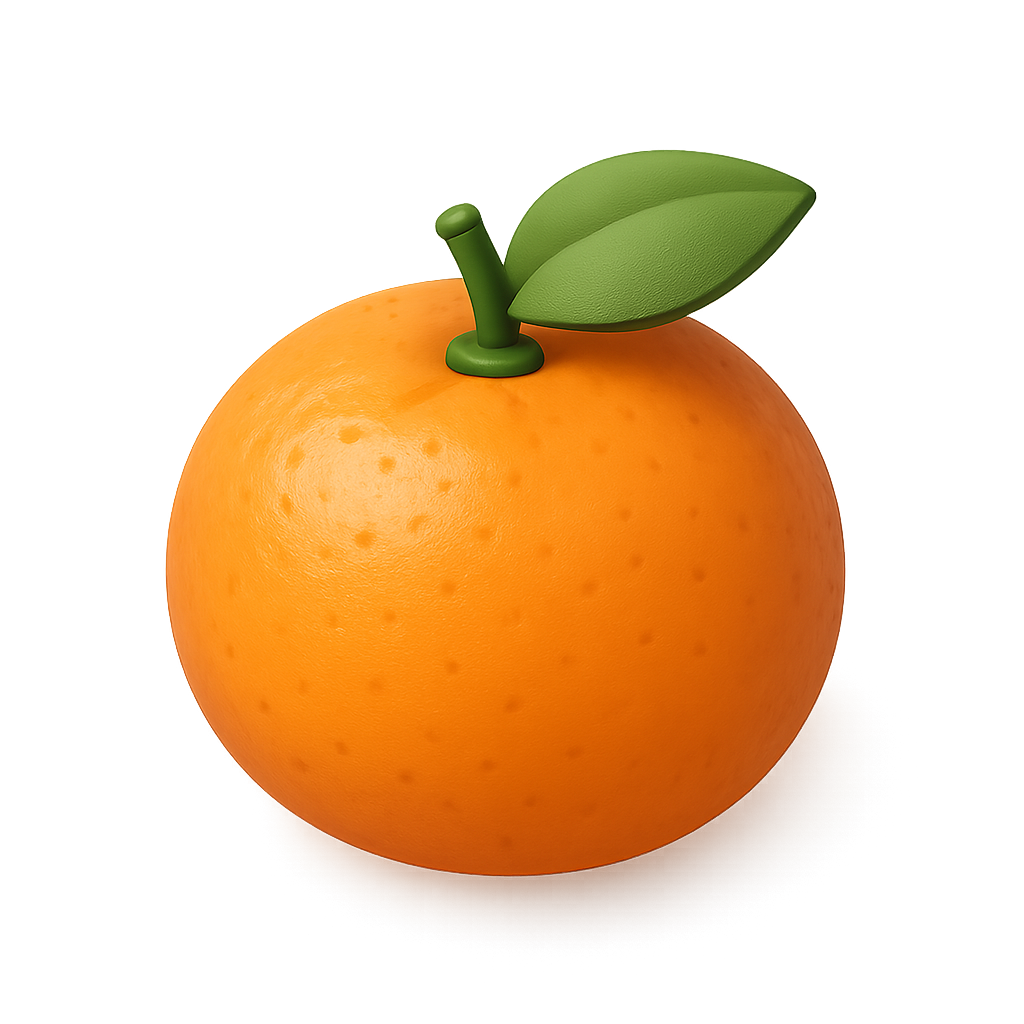 Vibrant 3D Orange Icon with Leaf Detail