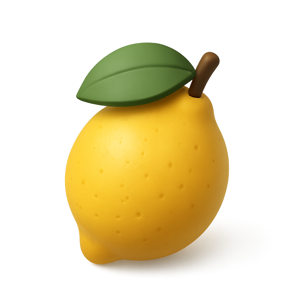 Stylized 3D Lemon Icon with Leaf and Isometric Design