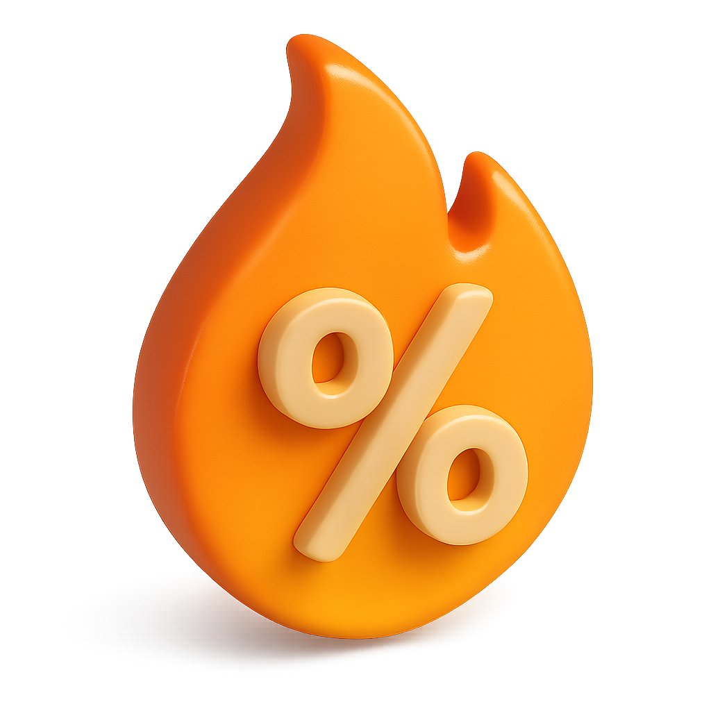 Vibrant 3D Flame Icon with Percentage Sign