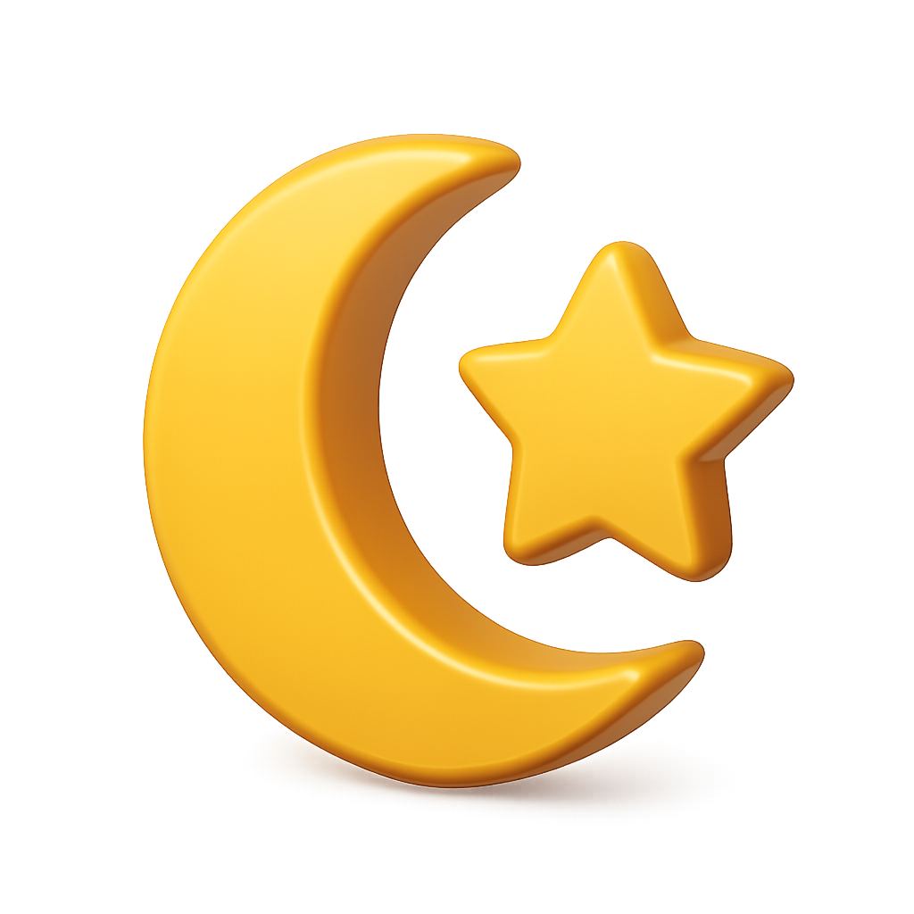 Vibrant 3D Crescent Moon and Star Icon with Volumetric Feel