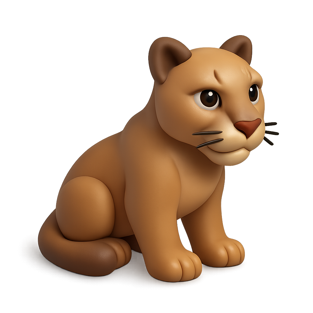 /Collection: /by davooda/Type: PNG/A stylized 3D icon of a cougar, portrayed in a three-quarter view. The design features smooth, rounded shapes and a warm color palette, exuding a playful yet realistic vibe.